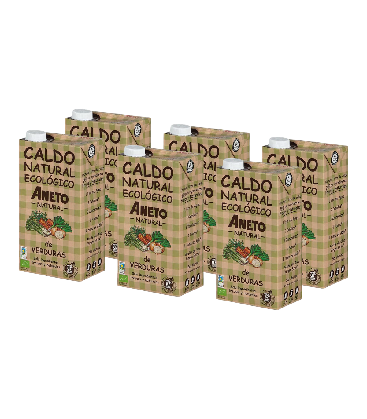 Seleccionamos les millors verdures de cultiu ECOLÒGIC. Les netegem acuradament i les submergim en aigua freda, després afegim l'oli d'oliva verge i un punt de sal. Coem tot a foc lent durant més de 3 hores. Perque només hi ha una manera de fer caldo NATURAL, com el fas a casa, com el fem a Aneto.