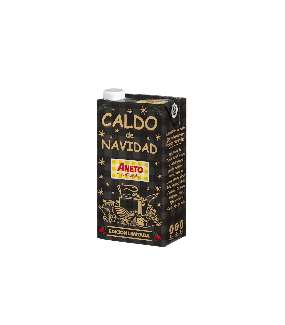 Seleccionem ingredients 100% naturals i frescos de primera qualitat. Els coem a foc lent durant 3 hores com sempre s'ha fet. El secret d'aquest caldo es que hem incorporat la carne, prèviament rostida, lels cigrons i les verdures triturades. Això provoca una capa sòlida que es dissoldrà al escalfar el caldo, com quan el fas a casa.