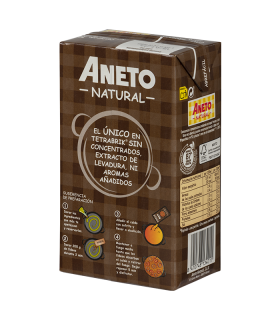 Agua, jamón serrano (10%), huesos de paletilla (8%), costillas, espinazo, cebolla, zanahorias, puerro, apio* y sal marina.
